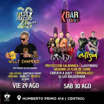 ✨✨ VIERNES 29/08: llega por Primera vez a Cba el Artista que está rompiendo todas las taquillas en el Norte Argentino 👉🏽 "WILLY CAMPERO" ➕ estos tremendos Músicos